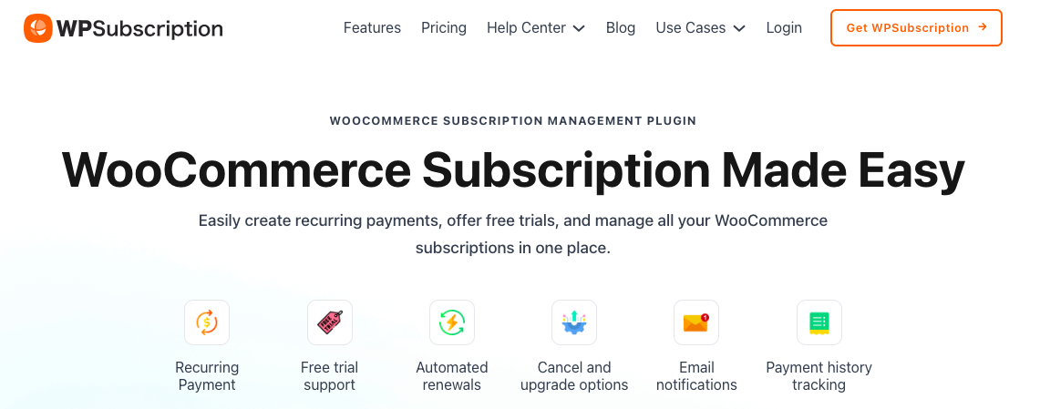 If you sell products or services that need repeat payments, you need a tool that makes subscriptions simple. WPSubscription is built to work smoothly with WooCommerce so you can manage all your subscriptions in one place without hassle.